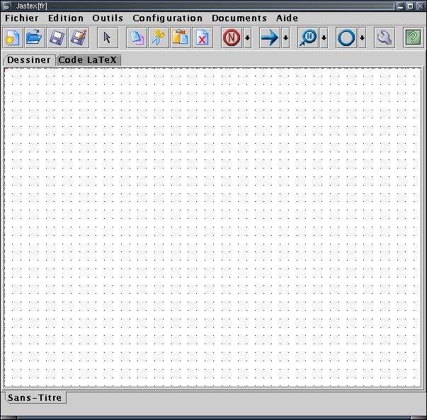 La fenêtre JasTeX se présente comme une fenêtre classique avec les menus en haut. Vient ensuite une série de boutons qui permettent d'accéder rapidement aux principales outils de JasTeX. On appellera cette barre, la ToolBar.